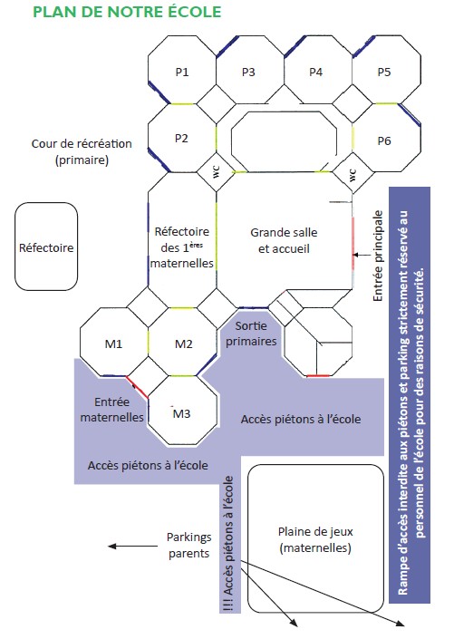 Pour des raisons de sécurité, les places de parking à proximité de l’école et la rampe d’accès sont strictement réservées au personnel. Merci de vous garer sur les